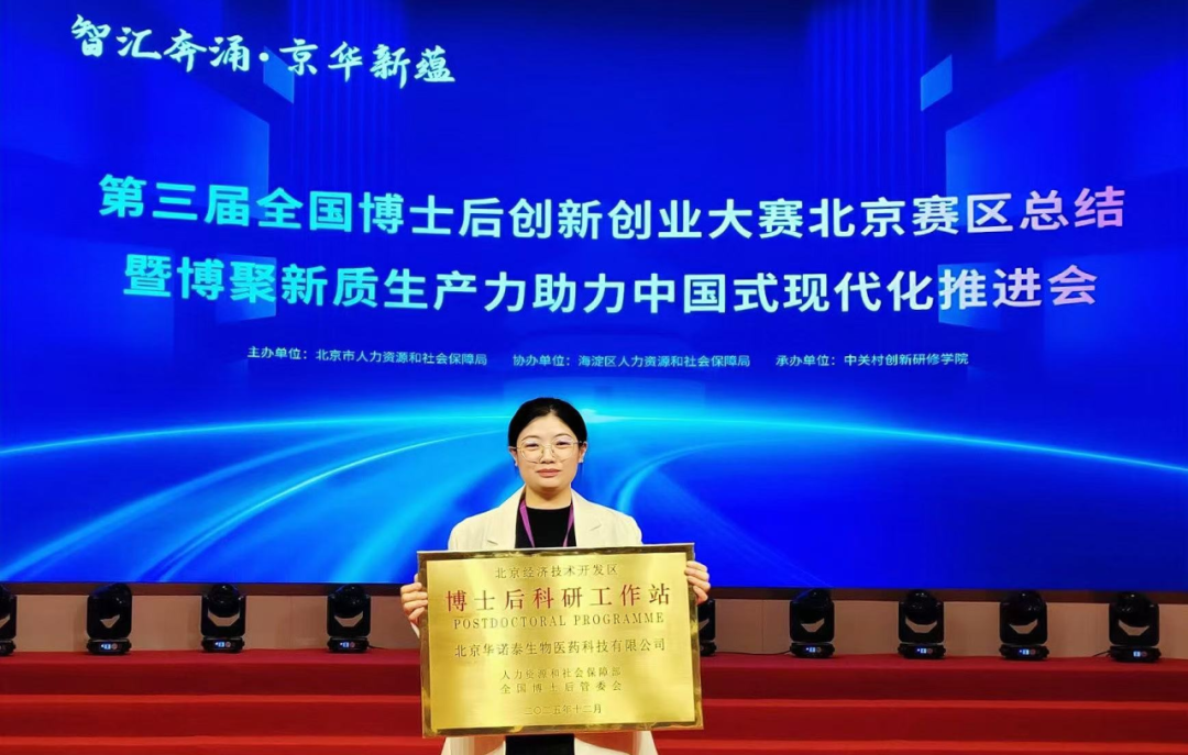 时间:2026-01-04近日,经北京市人力资源和社会保障局批准,北京华诺泰生物医药科技有限公司设立博士后科研工作站园区分站,并于12月18日正式授牌。此次成功设站,标志着公司在生物医药领域的整体研发实力与高水平人才培养条件获得了主管部门的权威认可。